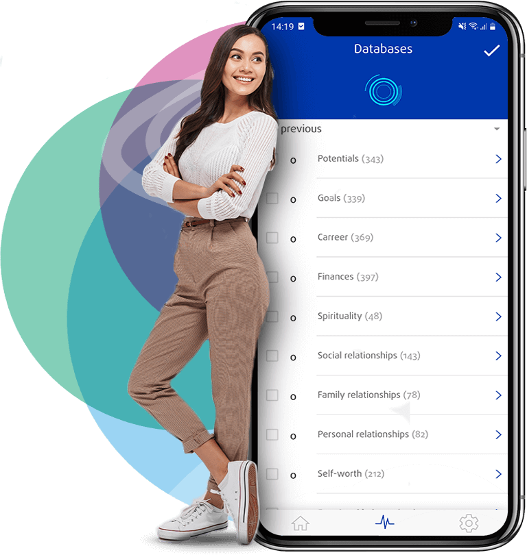 Este módulo está diseñado para poder gestionar todas las situaciones que se presentan en la vida diaria desde una zona de paz y positividad a través de la auto comprensión. Los términos utilizados en las bases de datos y los módulos están destinados a ejercer una influencia mental positiva comparable a las afirmaciones, el pensamiento positivo o la autosugestión, están diseñados para ayudar a los usuarios y clientes a visualizar con claridad sus objetivos personales y funciona como un libro de referencia, similar a una enciclopedia. No constituyen declaraciones sobre efectos.