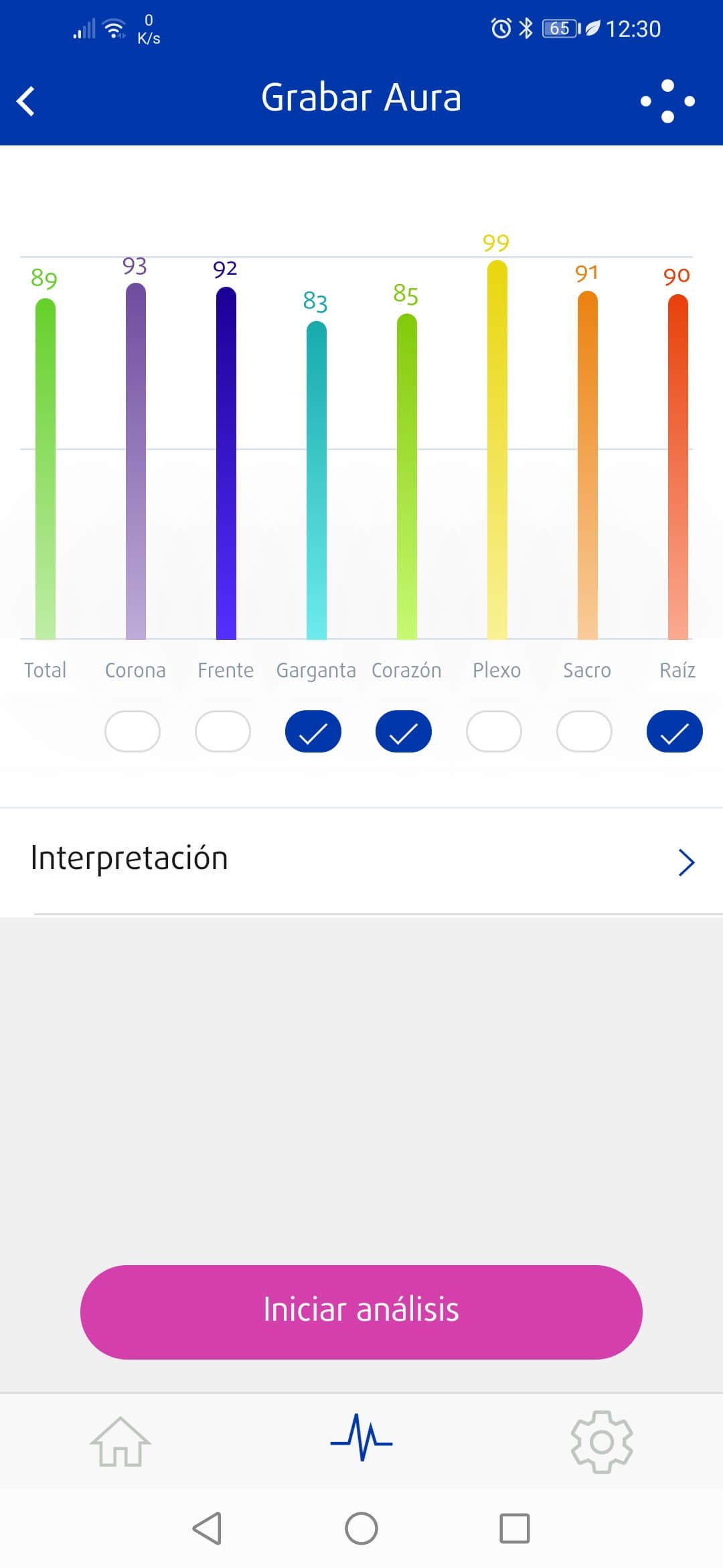 El módulo de Aura brinda un reporte de un análisis de tu estado emocional. En el reporte podemos ver nuestro porcentaje de balance actual de manera general y detallada. Con Healy, podrás revisar tu estado actual deseado.